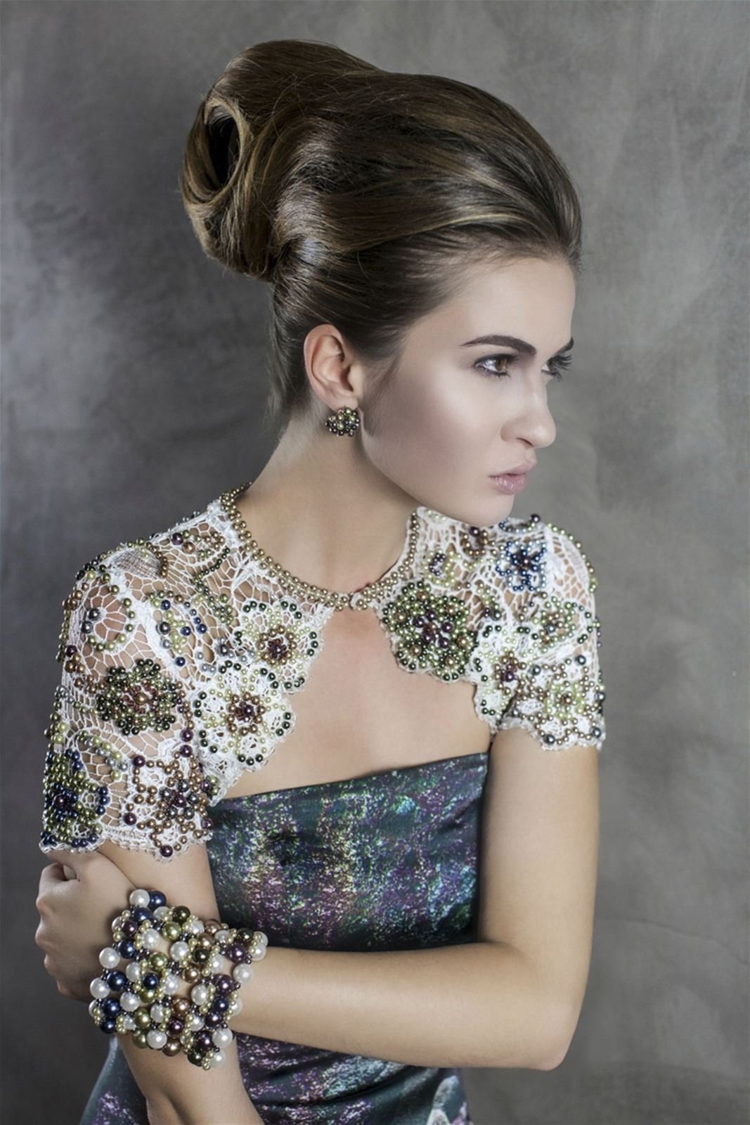 ABS pearls laser-cut or arranged in geometric patterns for futuristic fashion.